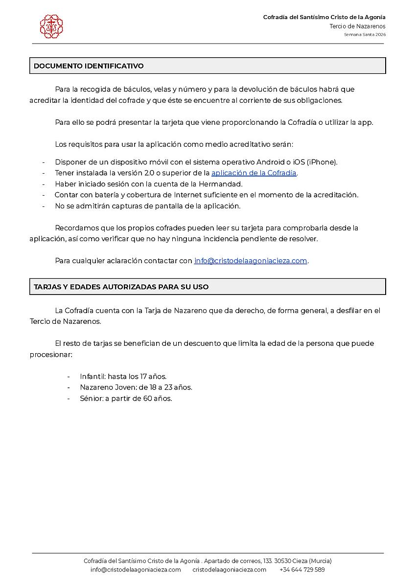 Documentación relativa a la Semana Santa de 2026 para los cofrades del Tercio de Nazarenos